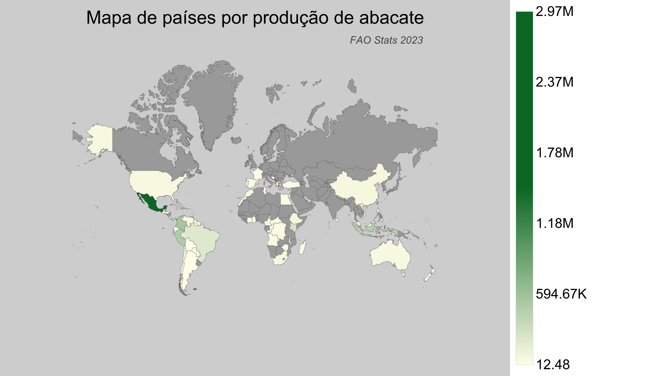 - O Brasil, com aproximadamente 4% da produção mundial, também desempenha um papel importante no cultivo de abacates, especialmente no mercado da América do Sul.