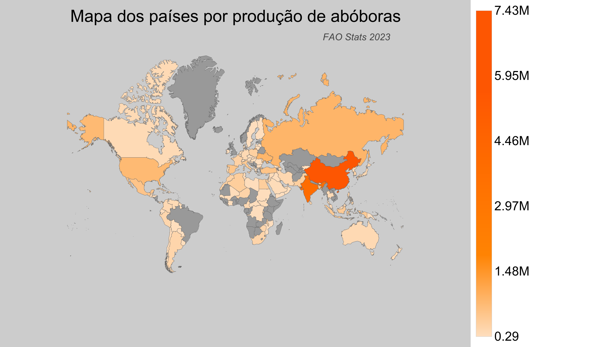 - Brasil não é listado pela FAO como produtor significativo de abóboras em 2023.