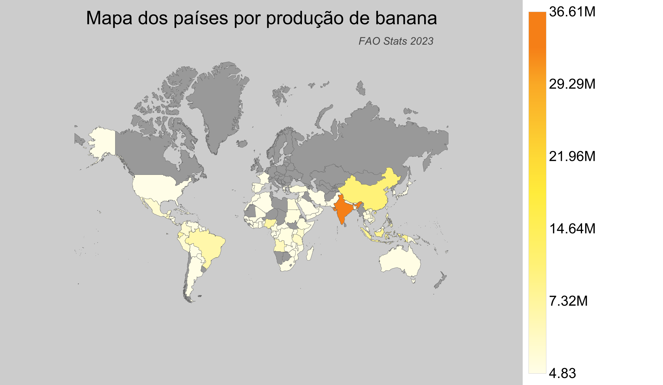 - Índia: Aproximadamente 36,6 milhões de toneladas, destacando-se como o maior produtor global de bananas.
