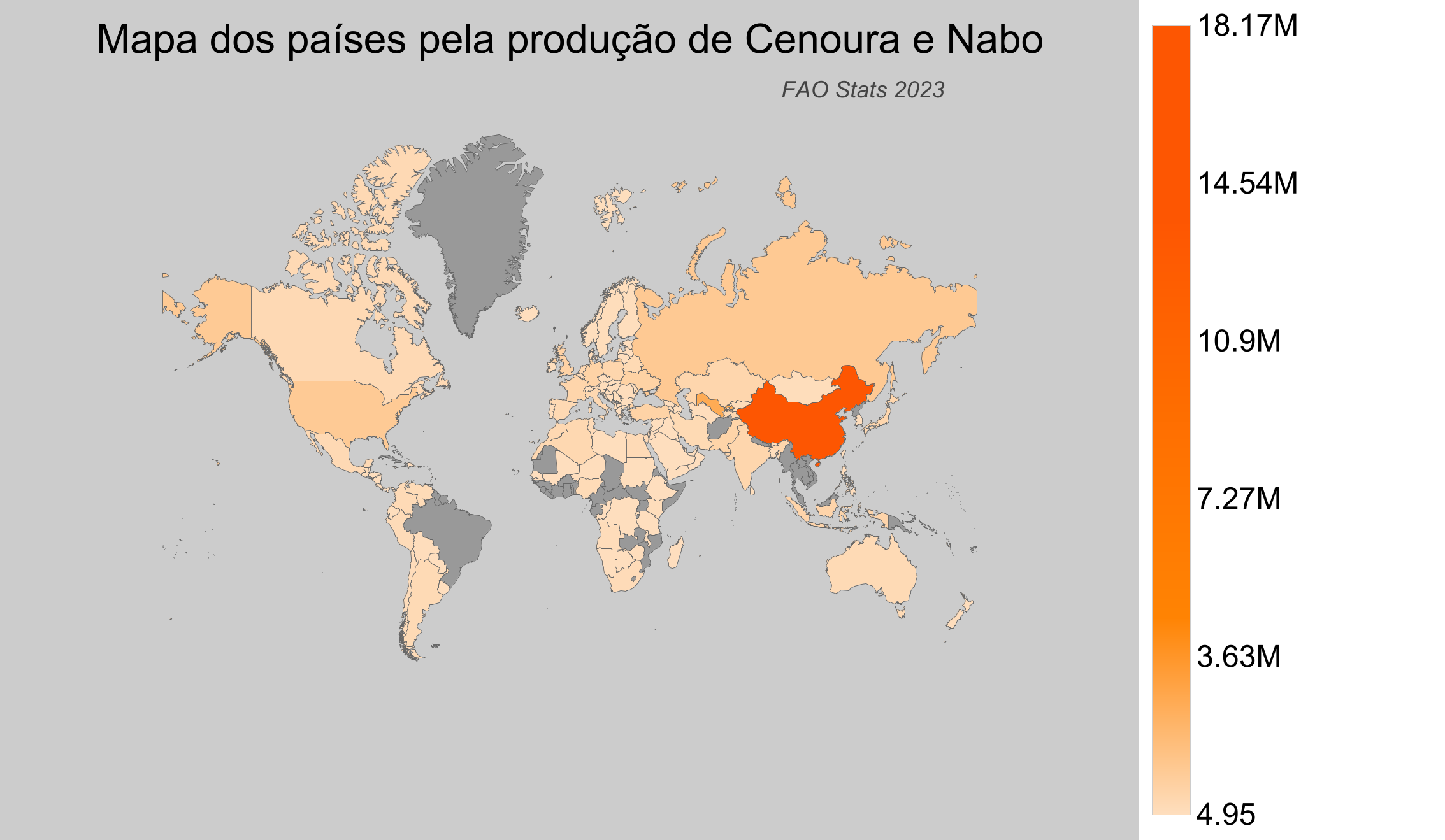 As cenouras e nabos são vegetais essenciais cultivados em várias regiões do mundo, principalmente em climas temperados. Eles são conhecidos por seus benefícios nutricionais e são amplamente utilizados em diversas culinárias. Este relatório é baseado nos dados mais recentes de 2023 da base de dados da Organização das Nações Unidas para Agricultura e Alimentação (FAO).
