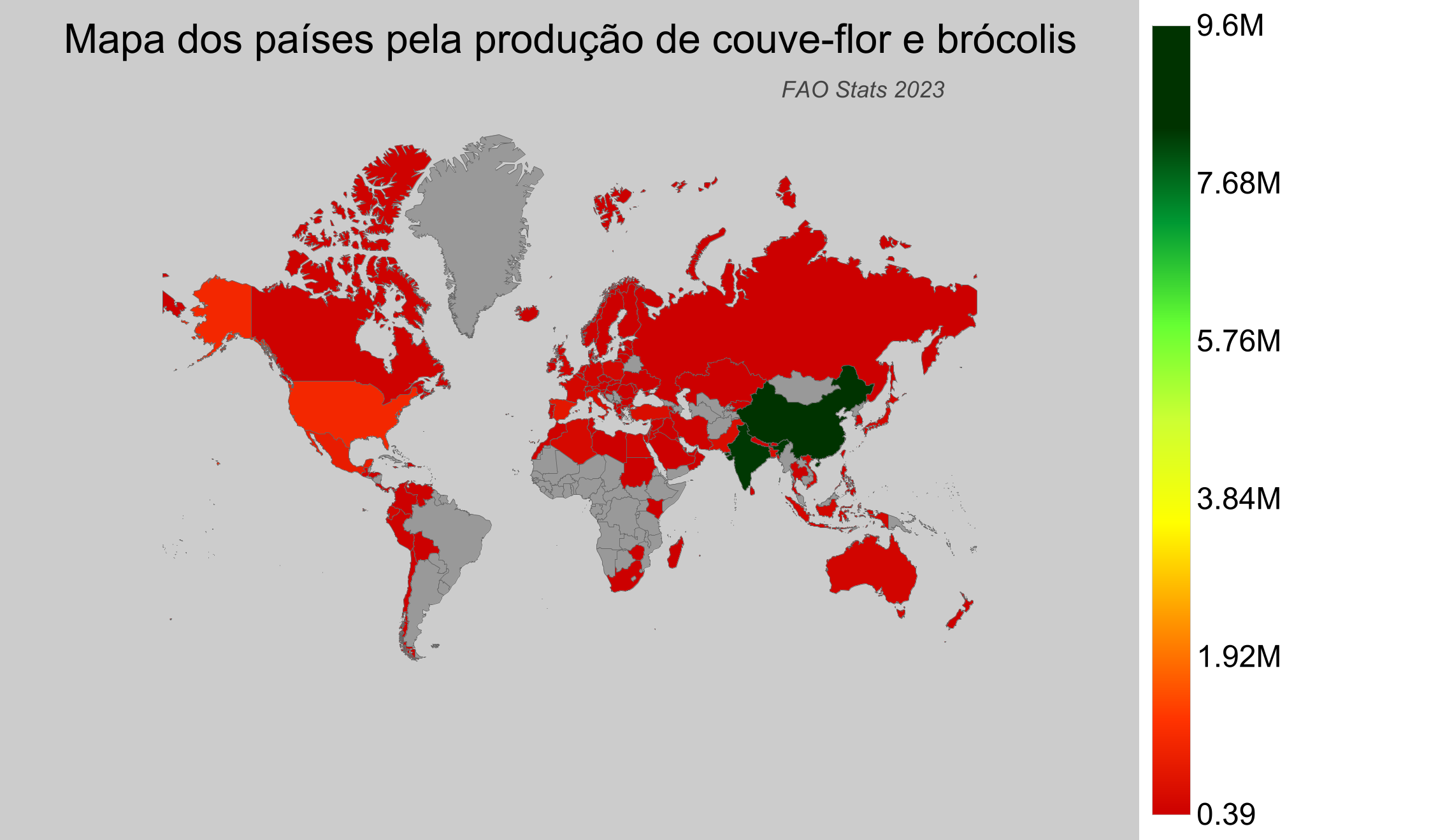 - O Brasil, segundo a FAO, não está listado como produtor significativo de couve-flor e brócolis.