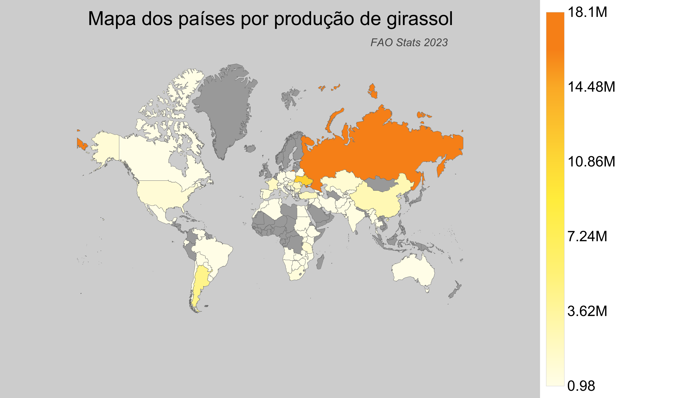 - Federação Russa lidera com uma produção impressionante de cerca de 18,1 milhões de toneladas.