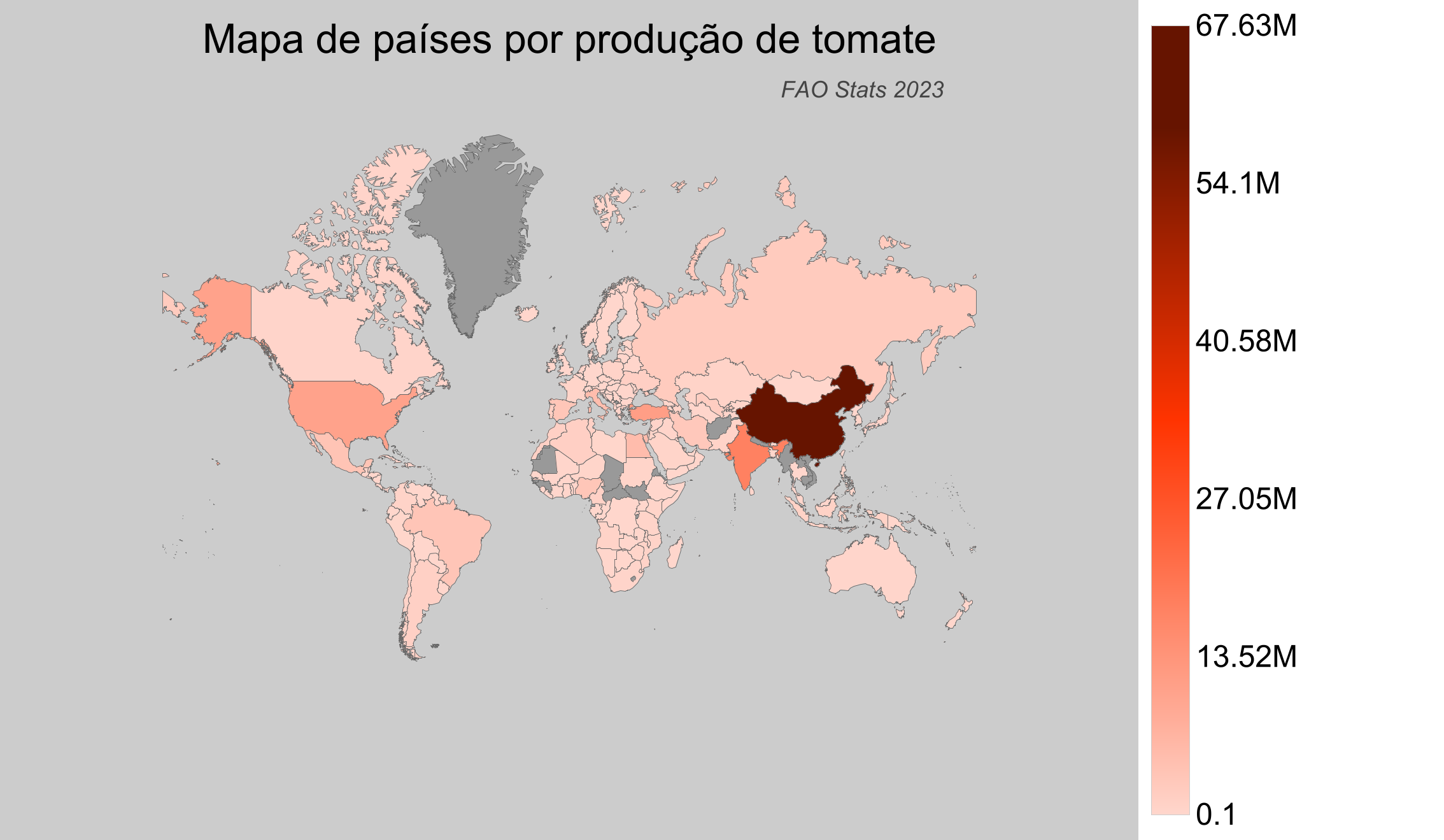 - China lidera a produção mundial de tomate com cerca de 67 milhões de toneladas.