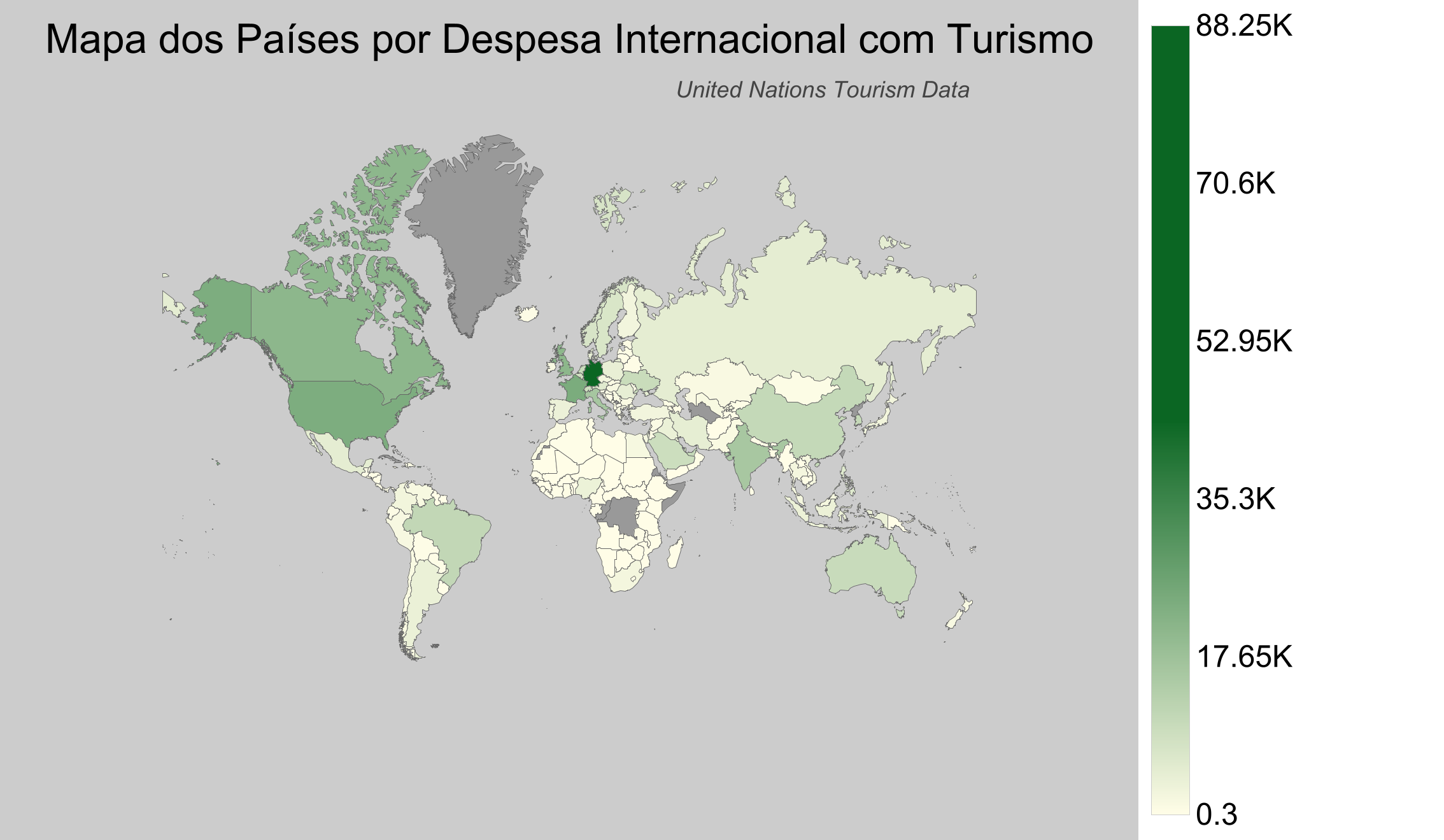 O turismo internacional desempenha um papel vital na economia global, pois diversos países contribuem significativamente com suas despesas enquanto seus cidadãos viajam para o exterior. Monitorar estas despesas internacionais de turismo é importante para entender as dinâmicas de fluxo de capital e preferências de destino ao redor do mundo. Segundo o banco de dados de turismo das Nações Unidas, o ano de 2023 oferece as estatísticas mais recentes para esta análise. É importante salientar que os dados apresentados referem-se apenas a viagens internacionais, excluindo as despesas com viagens domésticas.