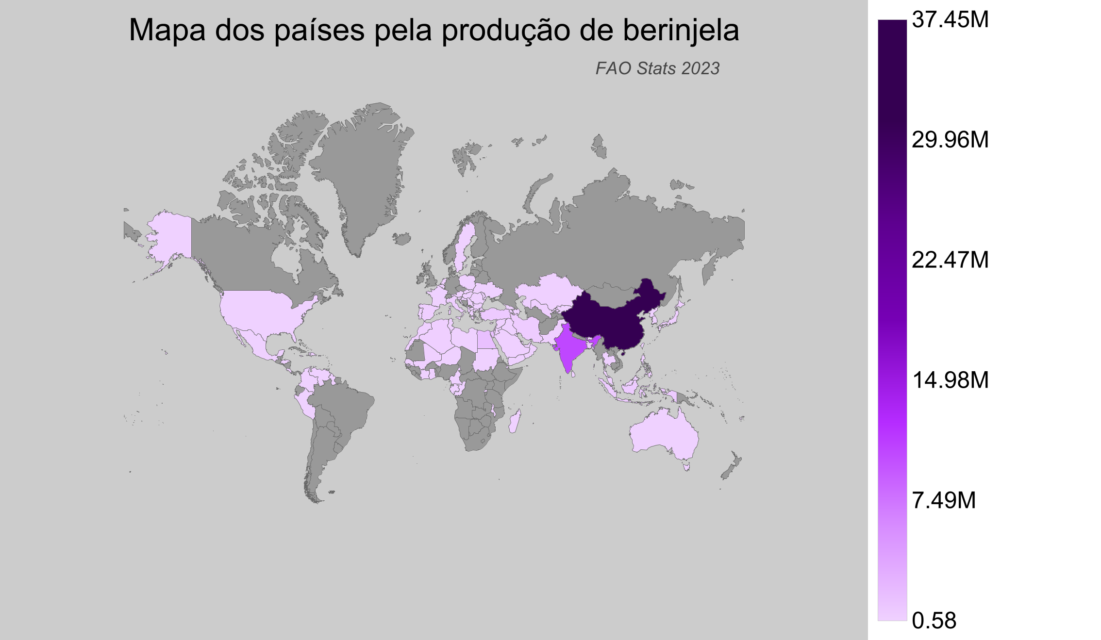 - Brasil: De acordo com as estatísticas da FAO, o Brasil não está entre os países produtores de berinjela.