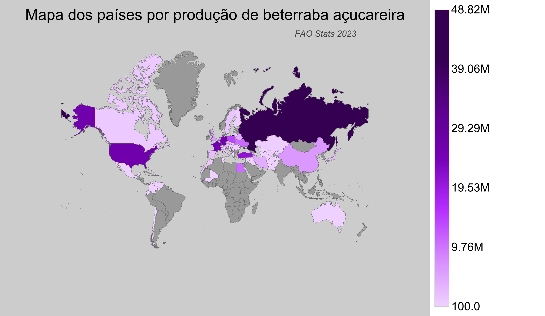- Federação Russa: A maior produtora de beterraba açucareira em 2023, com cerca de 48,8 milhões de toneladas.