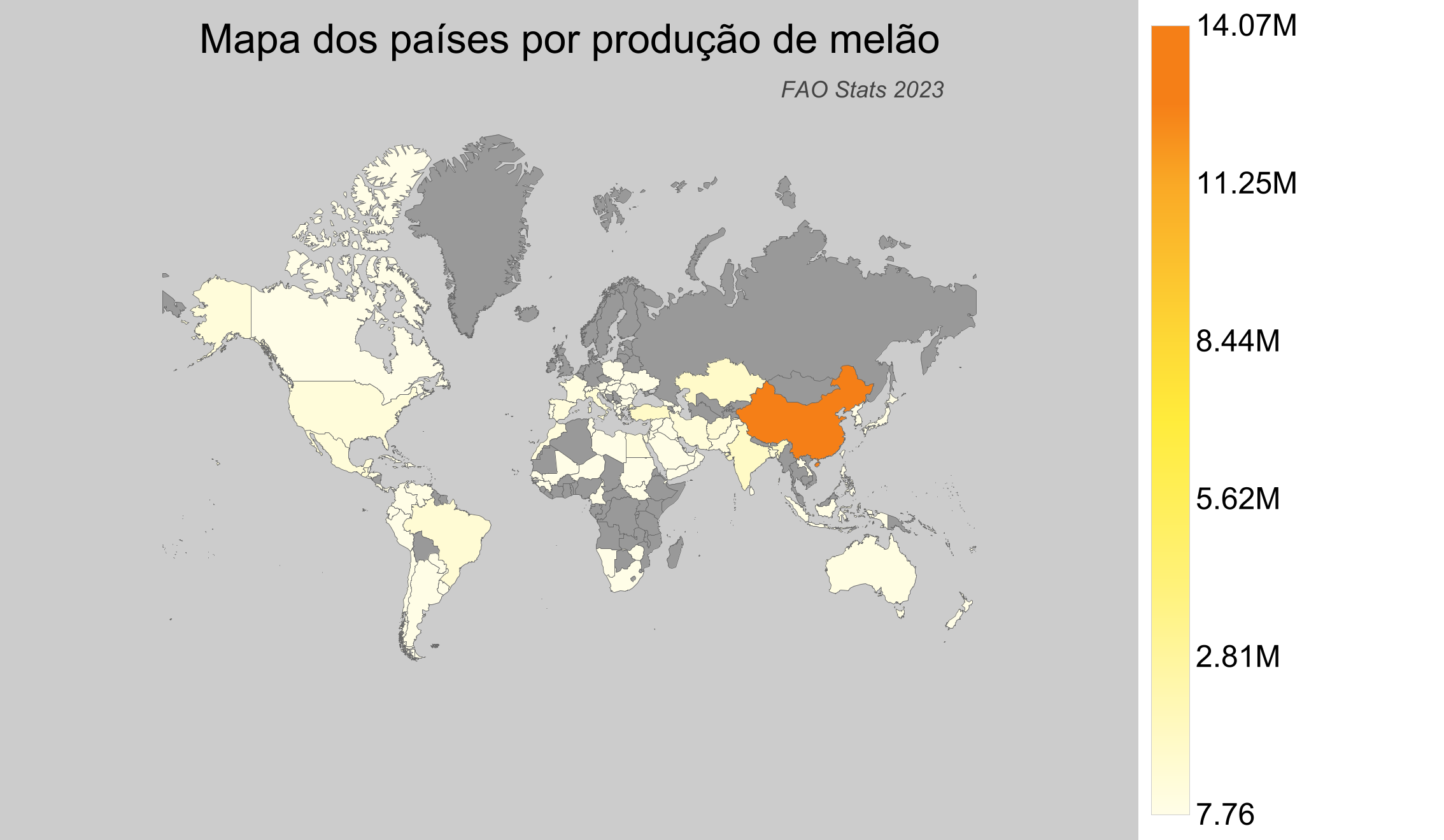 - China lidera a produção de melões em 2023 com aproximadamente 14 milhões de toneladas.