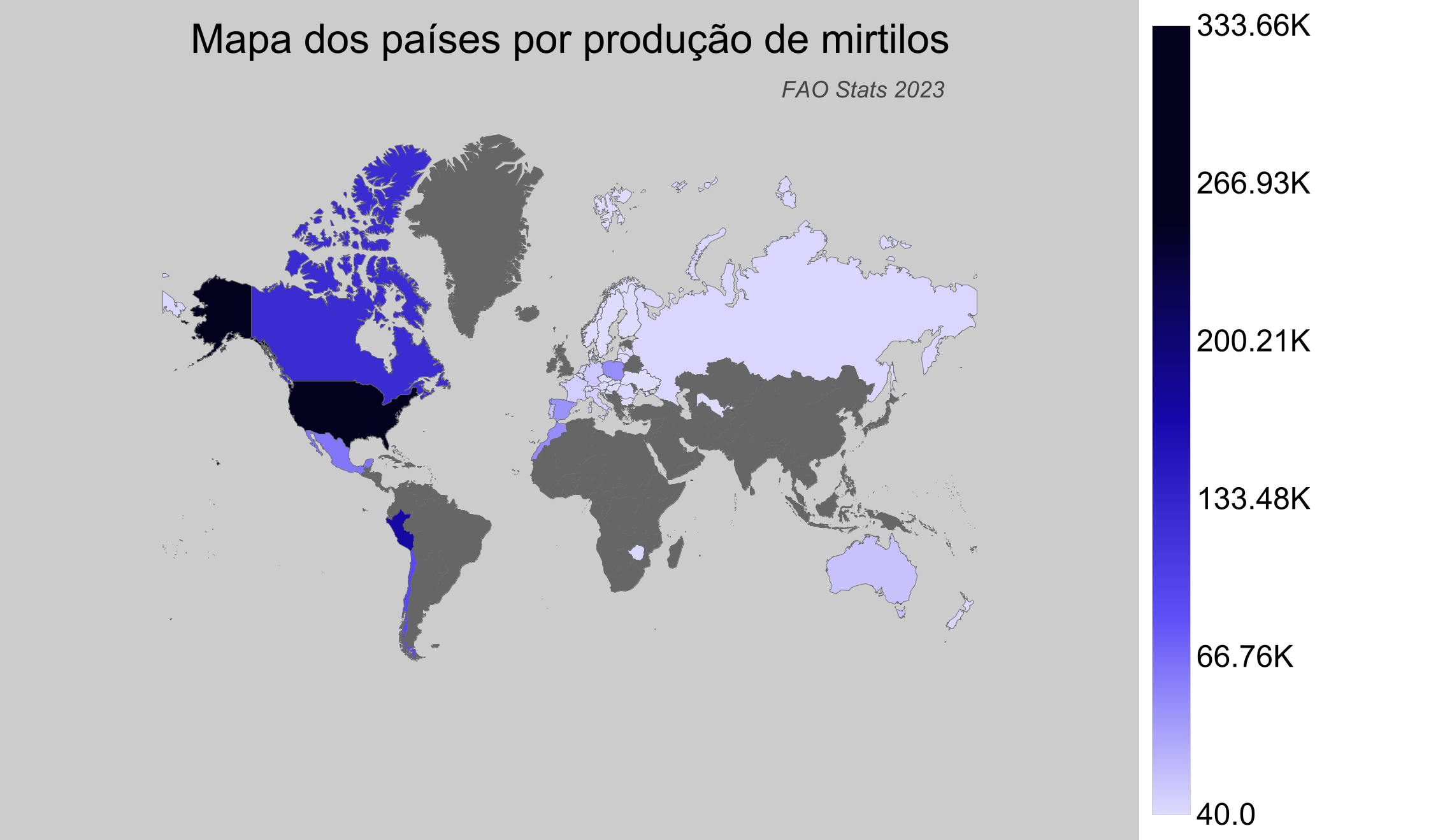 - Estados Unidos da América: produziu cerca de 334 mil toneladas de mirtilos, se firmando como o maior produtor mundial.