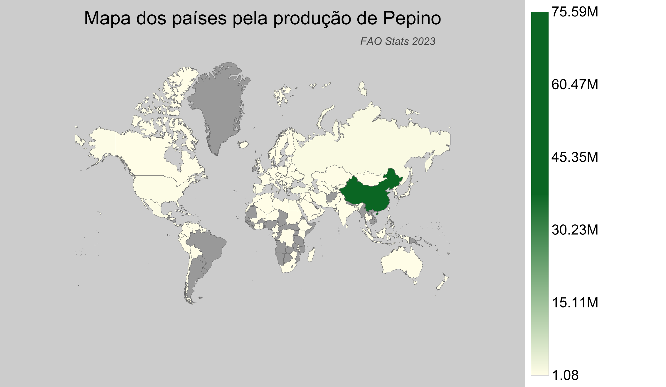 O pepino é um vegetal amplamente consumido, conhecido por seus benefícios refrescantes e baixo teor calórico. Ele é essencial em dietas saudáveis e muito utilizado em saladas. Este vegetal cresce melhor em climas temperados e tropicais, adaptando-se bem em períodos de calor intenso. Com dados disponíceis em 2025 da base de dados de estatísticas da Organização para a Alimentação e Agricultura (FAO), apresentamos um panorama da produção global de pepinos para o ano de 2023.